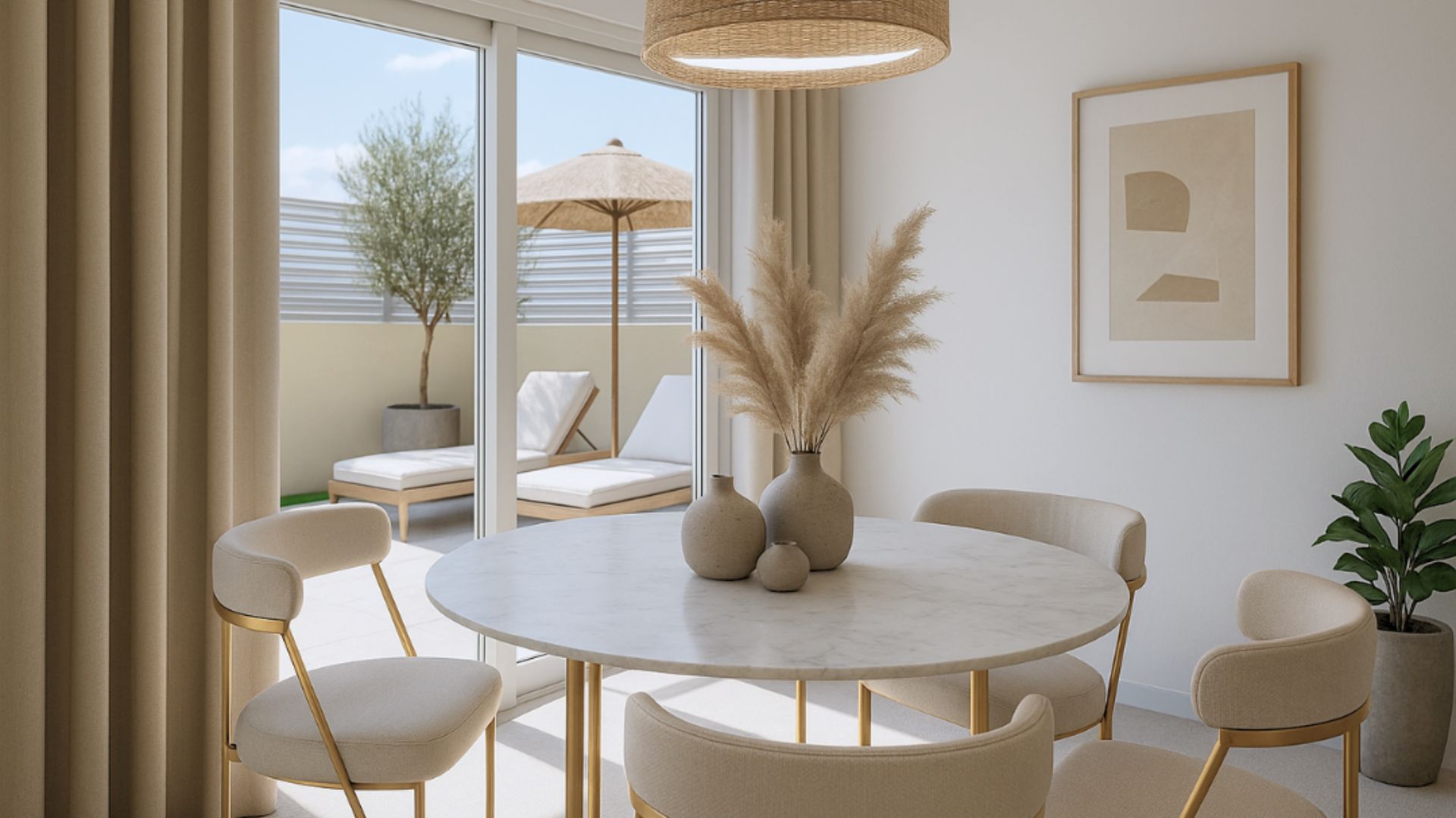 Nuestra filosofía se basa en una paleta inspirada en la naturaleza, con tonos beige, verde oliva y terracota. Buscamos crear diseños atemporales que evocan calma y confort en cada rincón.